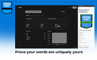 Person Proofは、Substackの投稿に特化して人間が生成したコンテンツを検証するために設計された無料のChrome拡張機能です。このツールは、投稿情報や改訂履歴を含むさまざまな側面をスキャンし、評価して、コンテンツが本当に人間によって作成されたものであることを確認します。テキストだけでなく、人間の特性や執筆傾向も分析し、ユーザーに彼らの作品の独自性を強調する包括的な検証プロセスを提供します。